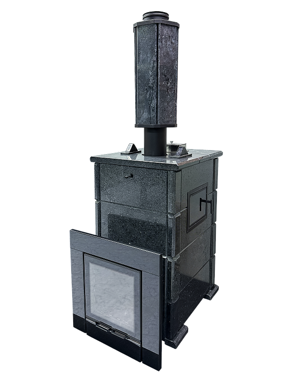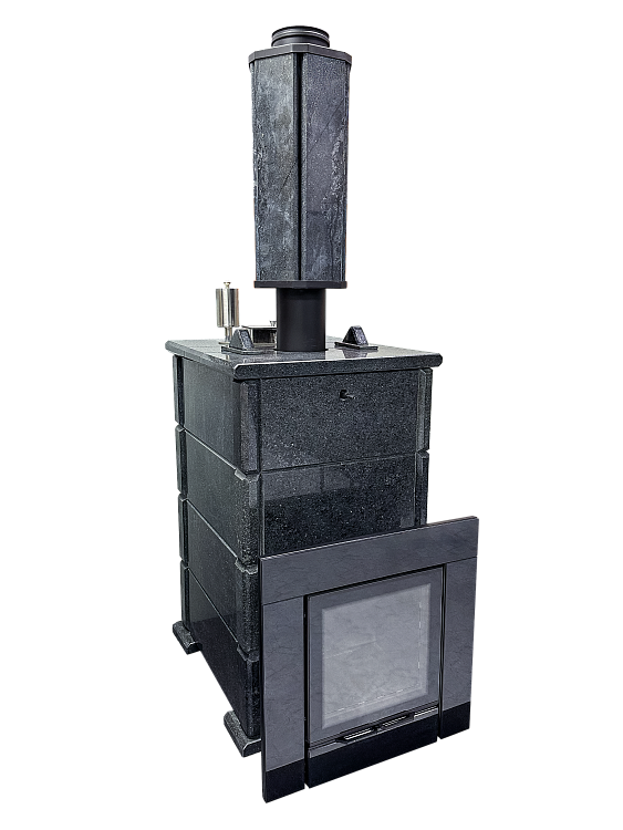 Печь для бани Parma 30 Premium в облицовке из пироксенита с боковым тоннелем